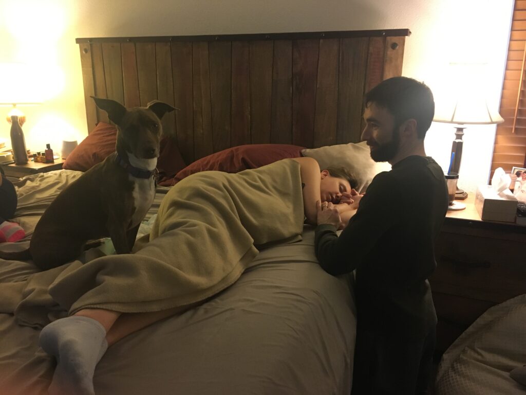 I moved through our home, the bedroom, the bathroom, the living room on the birth ball, and finally our bed when exhaustion settled deep into my body.